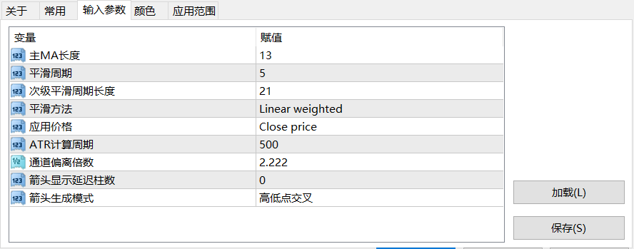 次级平滑周期(21):二级平滑窗口,与主长度形成协同过滤,确保趋势线平滑连续。2.2 通道计算参数