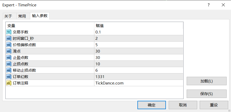 本EA通过少数核心参数控制交易逻辑。